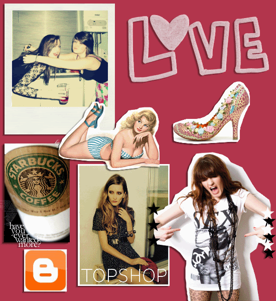 Okay so we have... Parties, friends Starbucks Blogging & all you guys! Topshop & shopping in general Music - florence and the machine, britney :) Vintage clothing and pictures Shoessss. Irregular Choice, mmm!