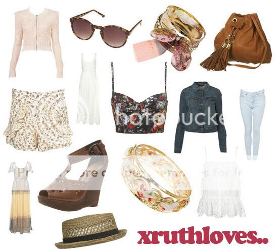 Take a trip to the English countryside with 'Meadow'. Mix faded denim with delicate florals and billowing chiffons to get the season's prettiest look - Topshop. I created this moodboard from Topshops latest collection - Meadow. I love it. It's so pretty, flowly, and feminine - all of which are totally in this season. My personal favorites are the material bangle, the straw hat, leather bag, denim jacket & sunglasses. I'm going to need some of these things - or similar, prefrably cheaper.. and vintage.. yeah, that would do the trick for me. I'm bursting for summer to finally arrive, after a long, cold winter. But hey - i'm off to Egypt for 2 weeks in April :) Yaaaaaaaaay, but no blog posts! :( Also, i ordered a few things from ASOS. I'll post when they arrive! Labels: Highstreet, Spring/Summer10, Topshop