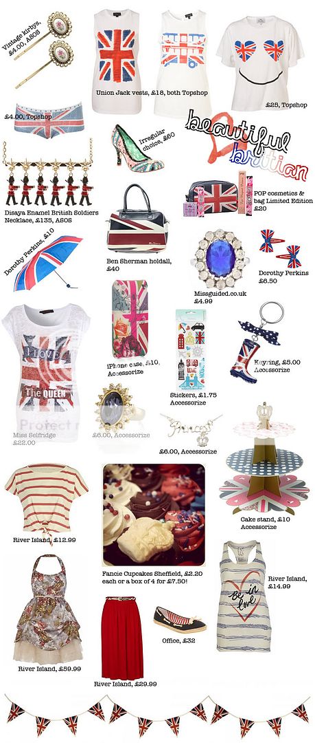 The whole of the world are going mental about the wedding and Britain, so I felt like I should join in! Instead tomorrow, I'm going to my friend Amy's house to drink Bucks Fizz and eat Trifle and Shortbread! Here's a few of my favourite British-inspired items.