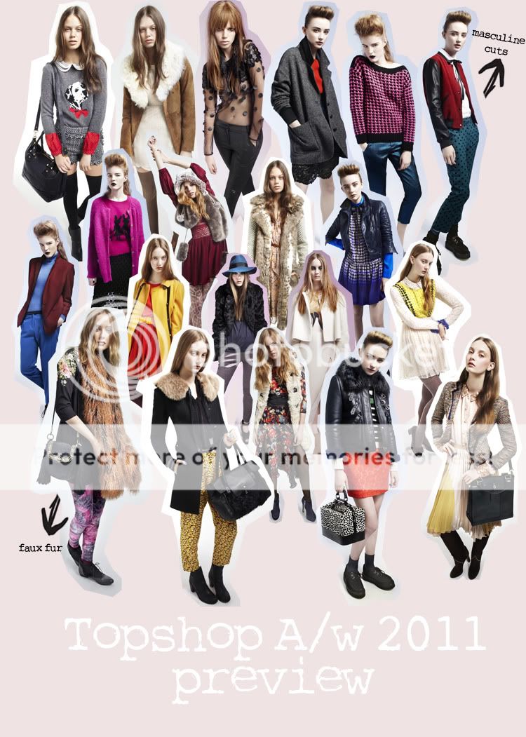 Just when we thought we'd finally gotten into summer, the highstreet are releasing their previews of the A/W collections for 2011. In July. Depressing. I'm sure if your on mailing lists for places like ASOS you'll receive emails about any upcoming collections. Here's a sneak preview of the A/W collection for Topshop.