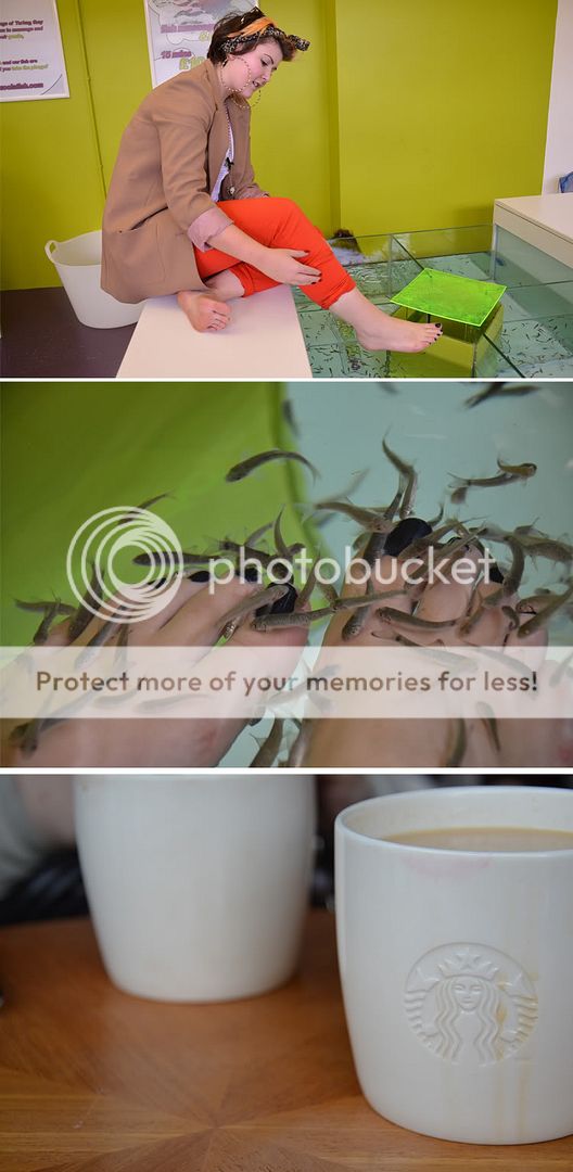 Really sorry to anyone thats a bit funny with feet haha, but it's so surreal to have little fish on your feet! I've wanted to have a fish pedicure in a while, just to see how it feels, and when it was £10 on Camden for 15 minutes, I could hardly say no. At first I was a little bit worried, as soon as I put my feet in they were all over! It was so strange. It tickled, but kinda felt like little bubbles all over your feet. The more I looked at them the more I laughed. It's definitely worth having a go at it though! And of course, a good Starbucks to finish the day off.