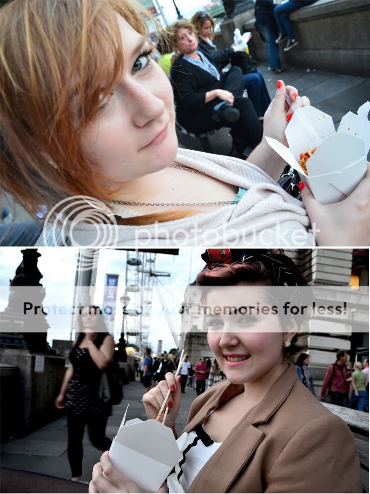 We spent a few hours on Oxford St, spending lots of money (slightly regret now, but oh well), then went back to the hotel and got ready to go out. This was the first time I'd properly got chance to use my new camera. I looked to touristy with it around my neck haha! We got chinese in boxes and just sat for a few hours until it got dark. It was nice and warm thankfully! I also dyed my hair slightly pink.. bit unsure about it..