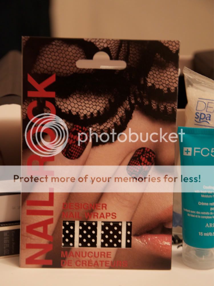 I was most pleased to see the Nail Rock nail wraps, I nearly bought some striped ones from Topshop the other day! I haven't had the chance to apply them yet, but I think that I'll definitely be using them on my toes, as they last MUCH longer. I received the black and white spots, but I've seen that they sent out leopard print, vertical stripes, and red lace. I'm very pleased with my spot themed ones!