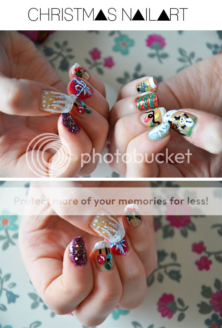 Feeling very festive, and had previously seen lots of Christmas themed nail art around on Tumblr, so thought I'd give it a go! I've got these nail art pens by RIO which are amazing and so easy to use. I got mine as a Christmas present a few years ago, but I think you can pick them up on eBay for about half the price! On the photo above, the purple glitter polish (I was going for a mulled wine look) was the Deborah Lippman polish I received in the December's Glossybox. Love it. The overcoat to these is a Rimmel one, not sure on the name, I think it's something like Stargazer? It was a cheap one anyway! Fingers crossed these'll last all the way through to the 25th itself!