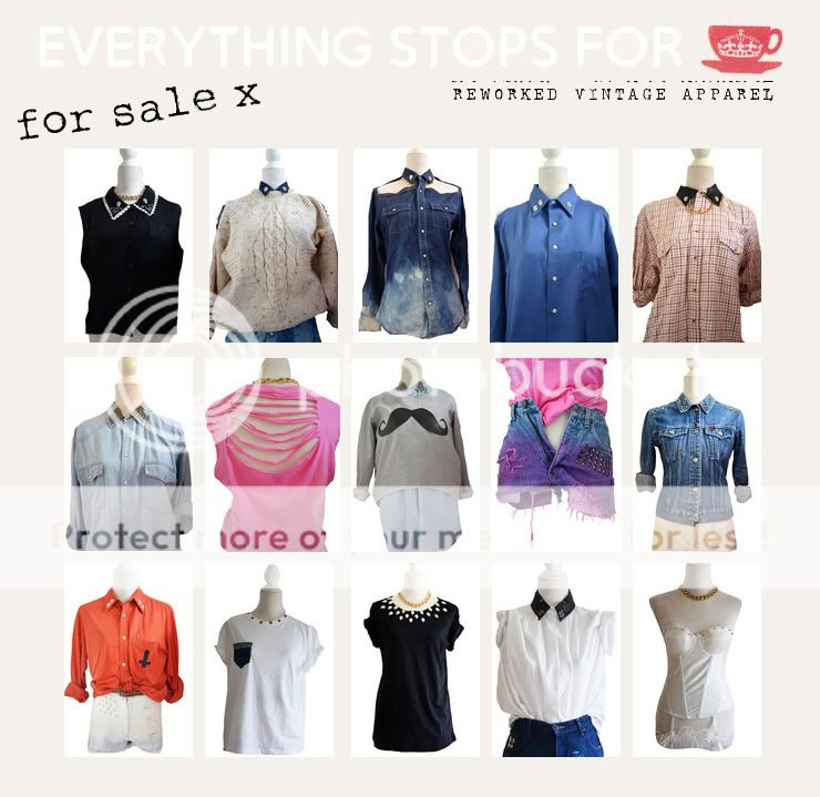 Whilst I've been gone, I've finished college which was a relief, and I've had a lot more time to spend on things that I love doing. I've been planning on doing it for a while, but... I finally had time to spend on building a little business! It's called ' Everything Stops For Tea', which sells all of the vintage clothes I've reworked. I've had really great feedback from it so far, so it's all quite exciting! About half of the things below have unfortunately sold out (so many things which I wanted to keep for myself), but just a little taster of whats in store at the moment...